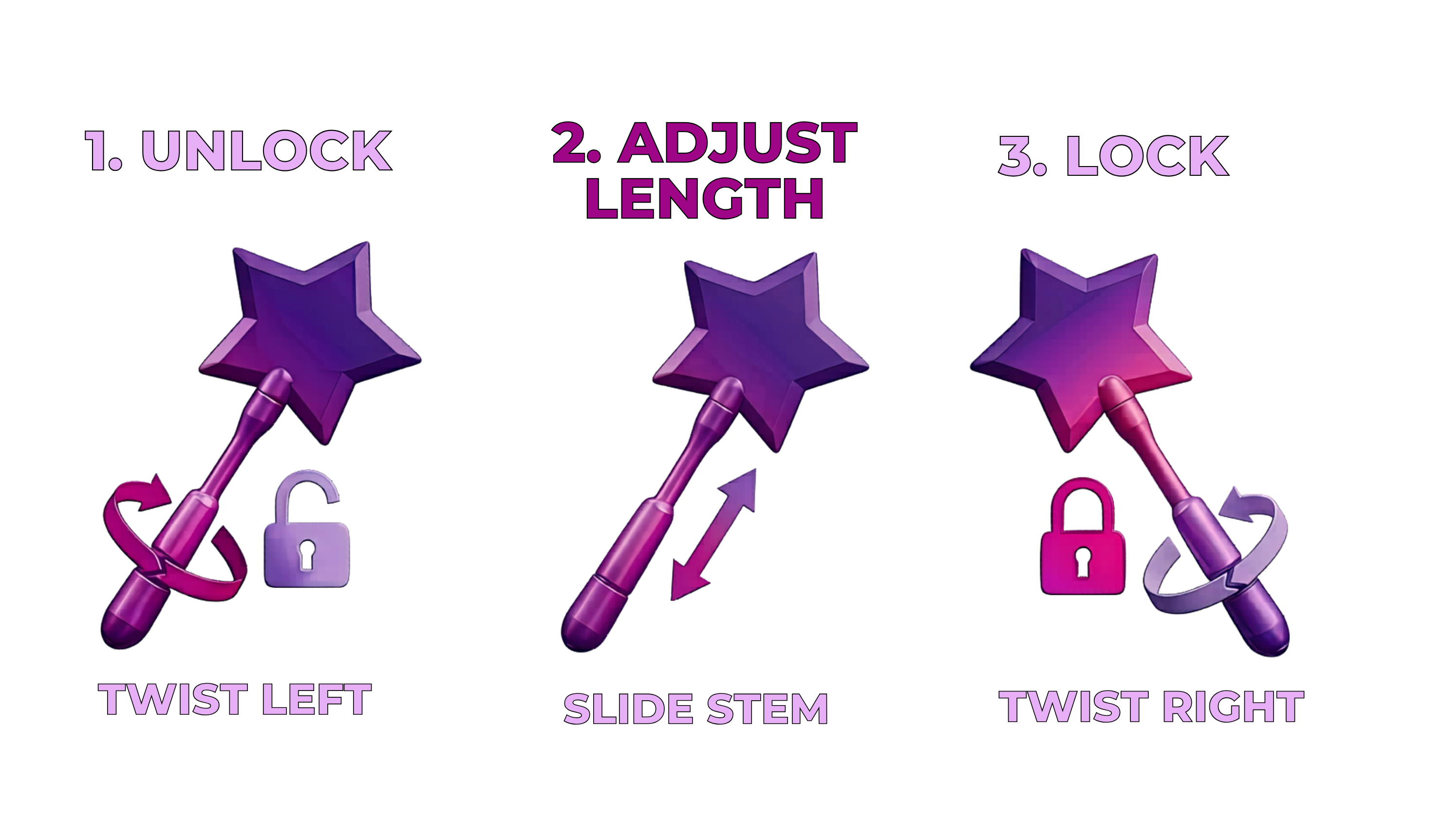 The PixiePay Wand telescopes down small enough for your handbag, clutch, or glove compartment — and extends full length when it's time to pay. Nine adjustable settings. No other pay wand does this.